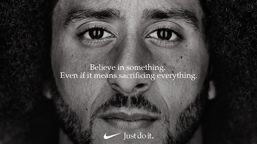 Suite à cette polémique, la ligue nationale de football américain met fin à son contrat mais Kaepernick en signe un autre dans la foulée, celui de Nike qui surfe ainsi sur le combat Black Lives Matter avec cette phrase forte : “Believe in something. Even if it means sacrificing everything.” puis un spot télévision, quelque temps plus tard.